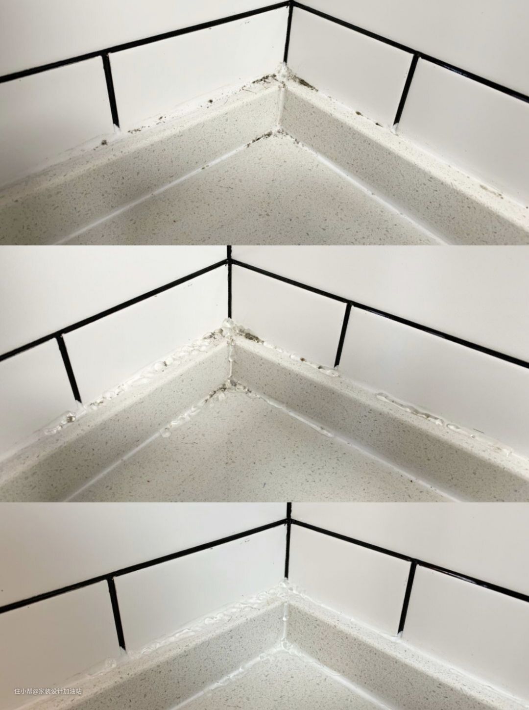 我们以往装修采用的普通挡水条方式,拐角缝隙都容易藏污纳垢,玻璃胶处经常发霉。