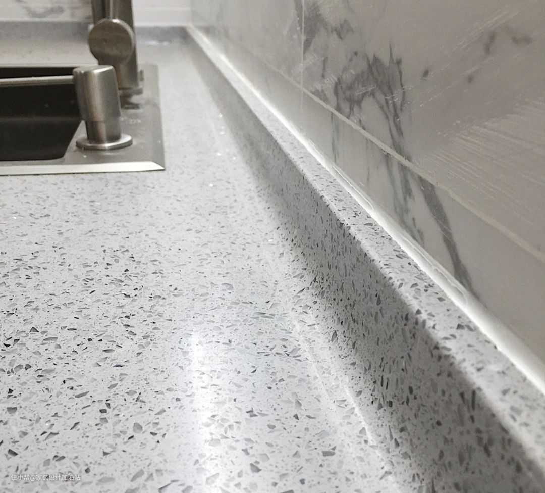 厨房台面做弧形挡水条,能减少台面一圈的卫生死角,不会积水,也减少发霉,每天做完饭一块抹布就能擦的干干净净。