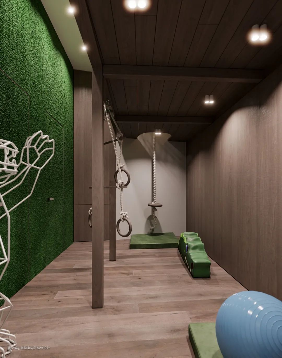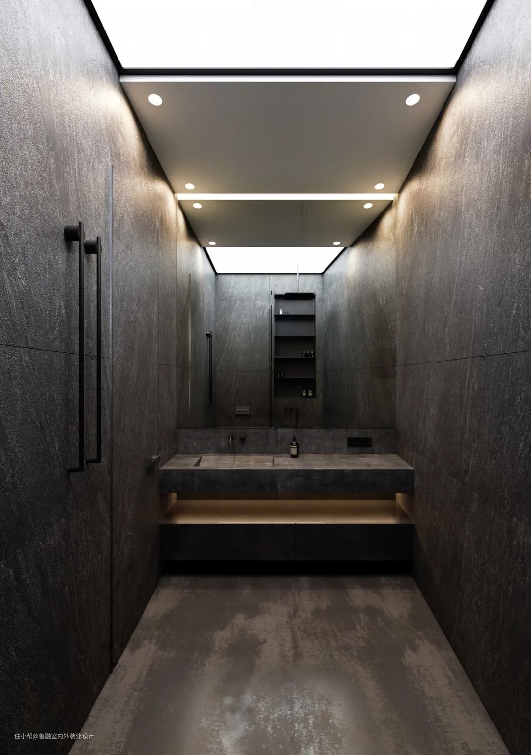 黑色的空间用线状的灯光打造了一个炫酷的空间。