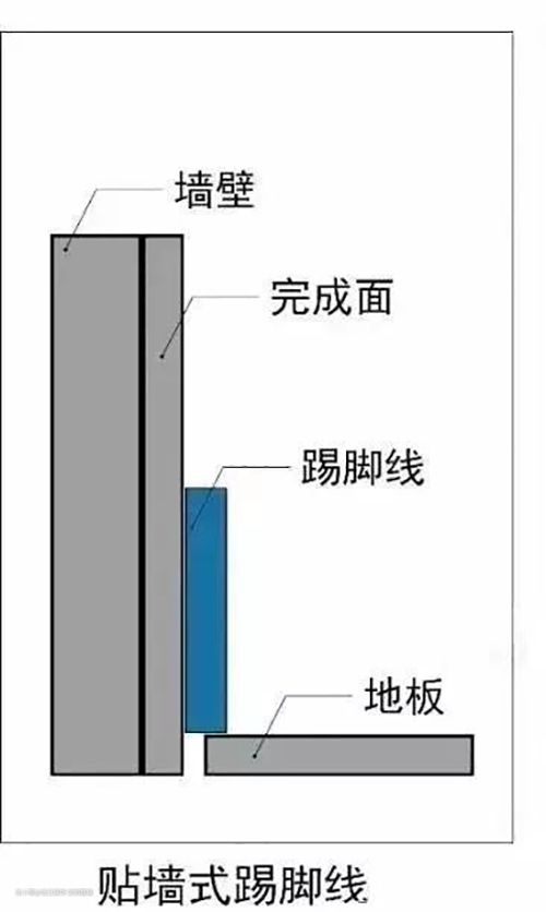 这种方法也叫明贴,是用钉子或粘合剂直接将踢脚线固定在墙面上,施工难度很小,这种工艺的材质多选用实木、PVC,以及金属等。