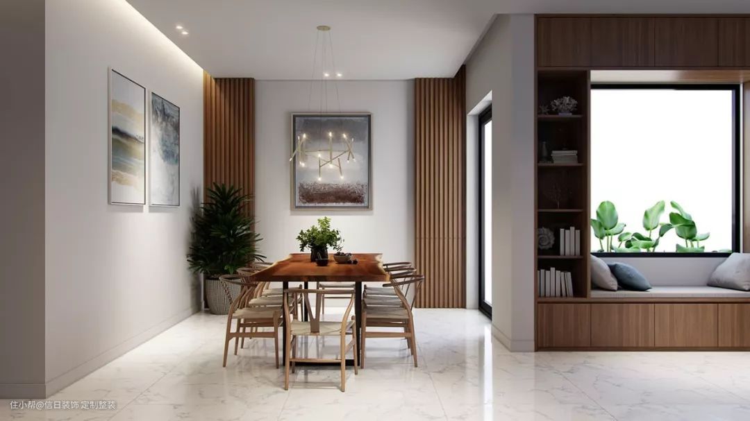 入墙式踢脚线是直接将踢脚线嵌入墙体的下面,使墙面好像是浮在地面上,造成地面延伸的错觉,对于小空间来说,有放大的效果,也能让空间显得更加简练。