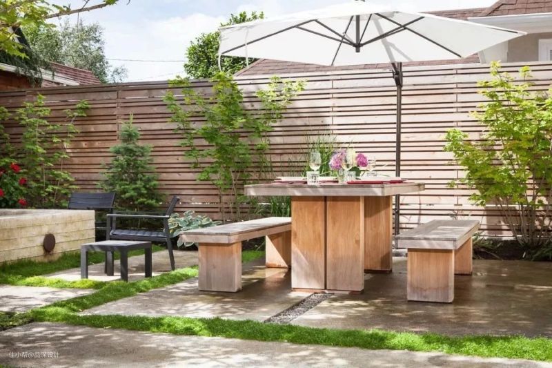 位于一楼的院子可能存在私密问题,为了避免邻居打扰,你可以种植一些高大而方便养护的落叶乔木,如榆树、水杉、悬铃木等进行遮挡,在保证空气流通的同时,又创造出更好的人居环境。