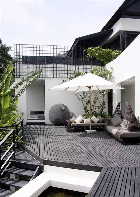 比如:有些人热爱交友,就可以将它打造成一个适合于聚会、聊天、BBQ的社交区域;也有人喜欢运动,空闲时习惯舒展肢体,做做瑜伽、举举杠铃,就不妨把这一天然氧吧打造成一个户外健身场所,也能感受到庭院生活带来的别样惬意。