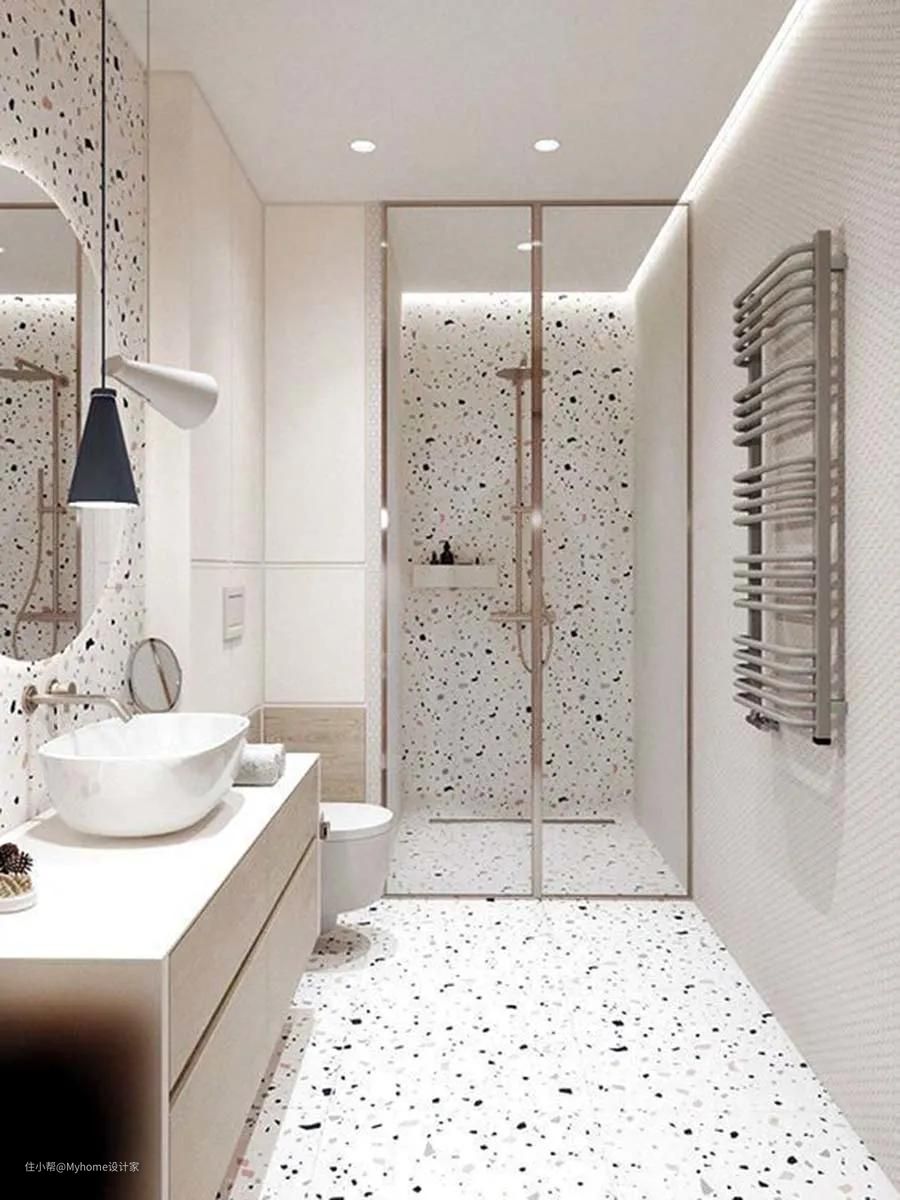 每次洗澡后都会刷浴室、淋浴房的人真的不多,加上皂垢、毛发、皮屑很容易卡在细缝里;所以,真的不要因为好看等因素就采用马赛克砖,建议改用较大的瓷砖,或是混凝土砂浆打造,减少藏污纳垢的机率。