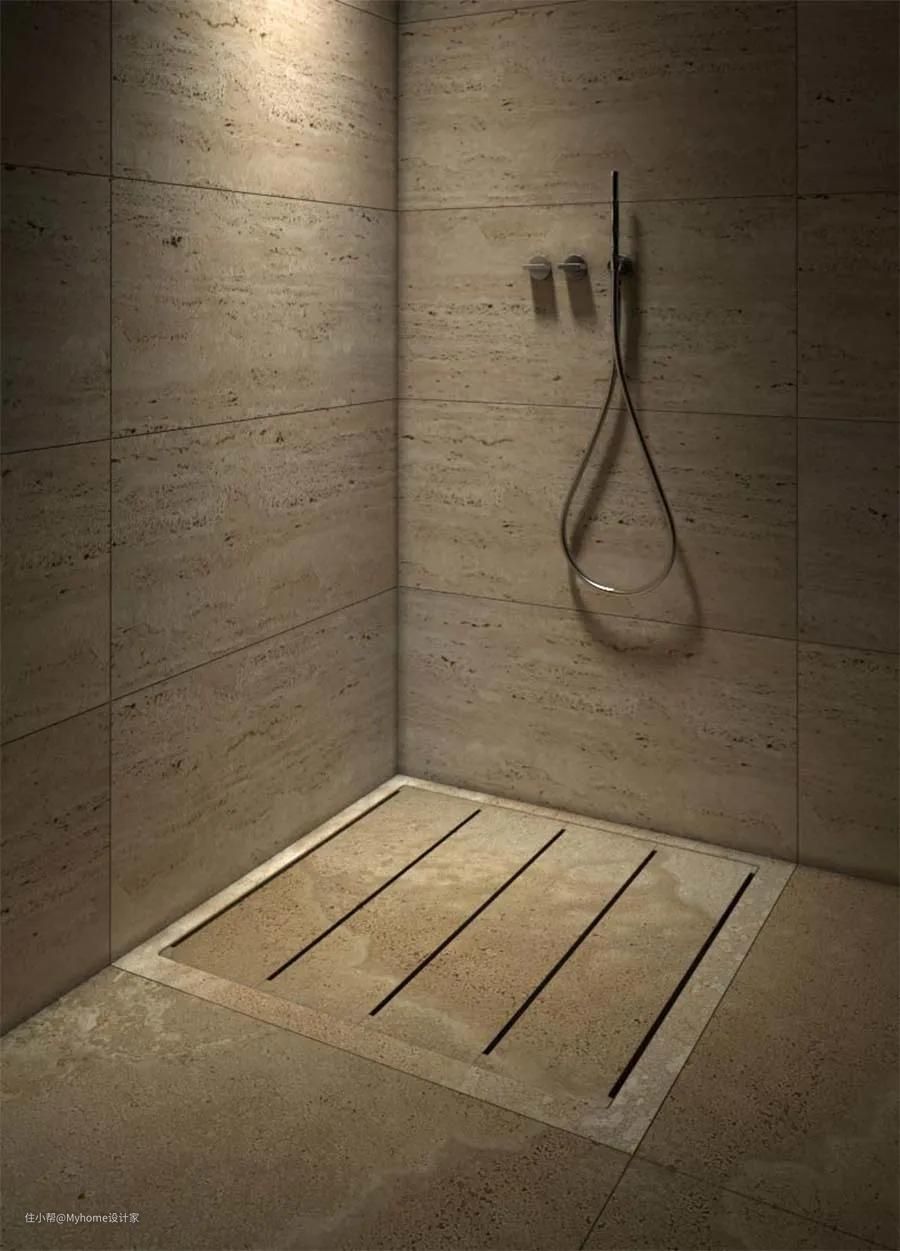 另外,也有越来越多屋主会采用"拉槽"设计;在淋浴房地板四周规划一条沟槽当做排水管道,中间区域的地板则凿出深度约3至5毫米的纹路,藉此增加止滑效果,同时利于加速排水。