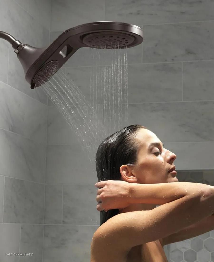 如果装修预算、空间条件许可,建议安装两个花洒,一个手持式、一个固定式。这么做除了营造更舒适的沐浴环境,也不用担心只有一个花洒,会在使用上受限制,或是手持式花洒无法充分提供淋浴的舒畅性。