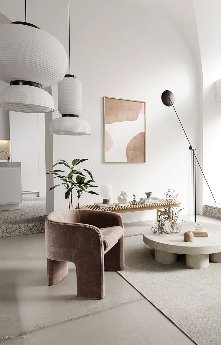 舒适极简主义强调材质与触感,弱化对比,往往采用米色布艺,浅色乳胶漆来渲染空间,带给人放松与惬意。