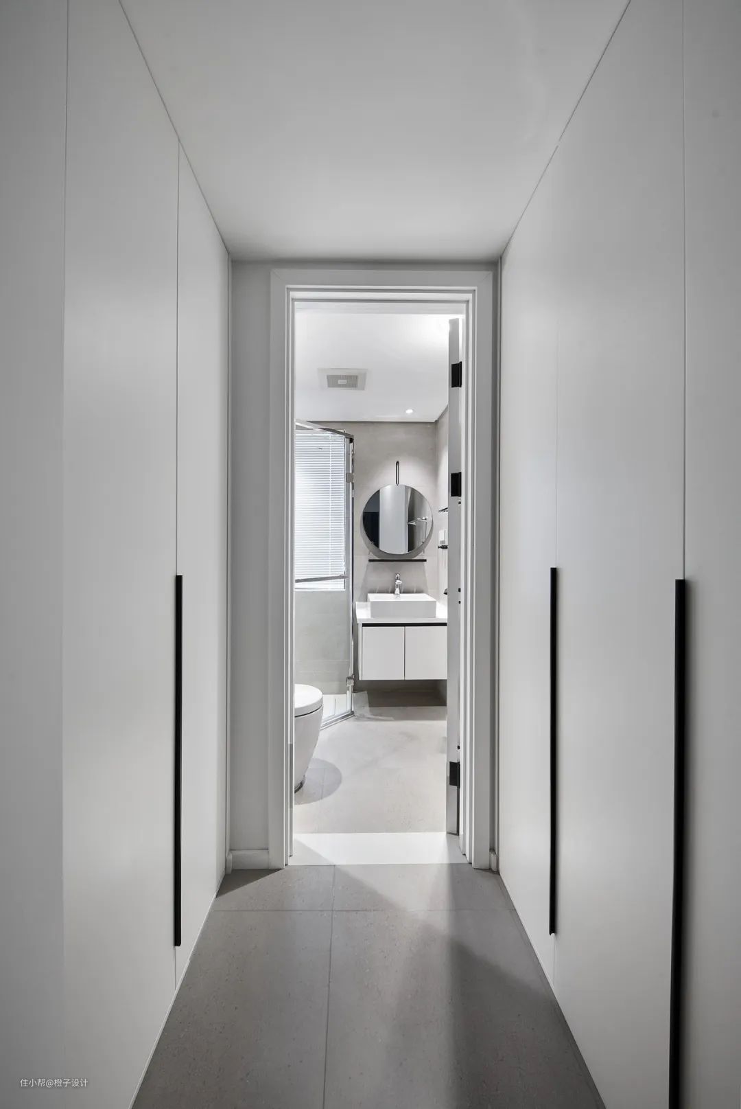 黑色作为一种经典的元素,小范围运用可以说是百搭的存在,尤其是在门槛石这个位置,采用黑色的设计可以让门槛石的空间过渡视觉更加明显,增加空间的划分感。