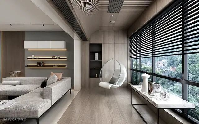 看上去简约时尚的空间,在设计上要将各种素材多元化运用,包括材料、色彩、照明等,注重空间的布局与使用功能,让其看上去非常简洁,又很大气。