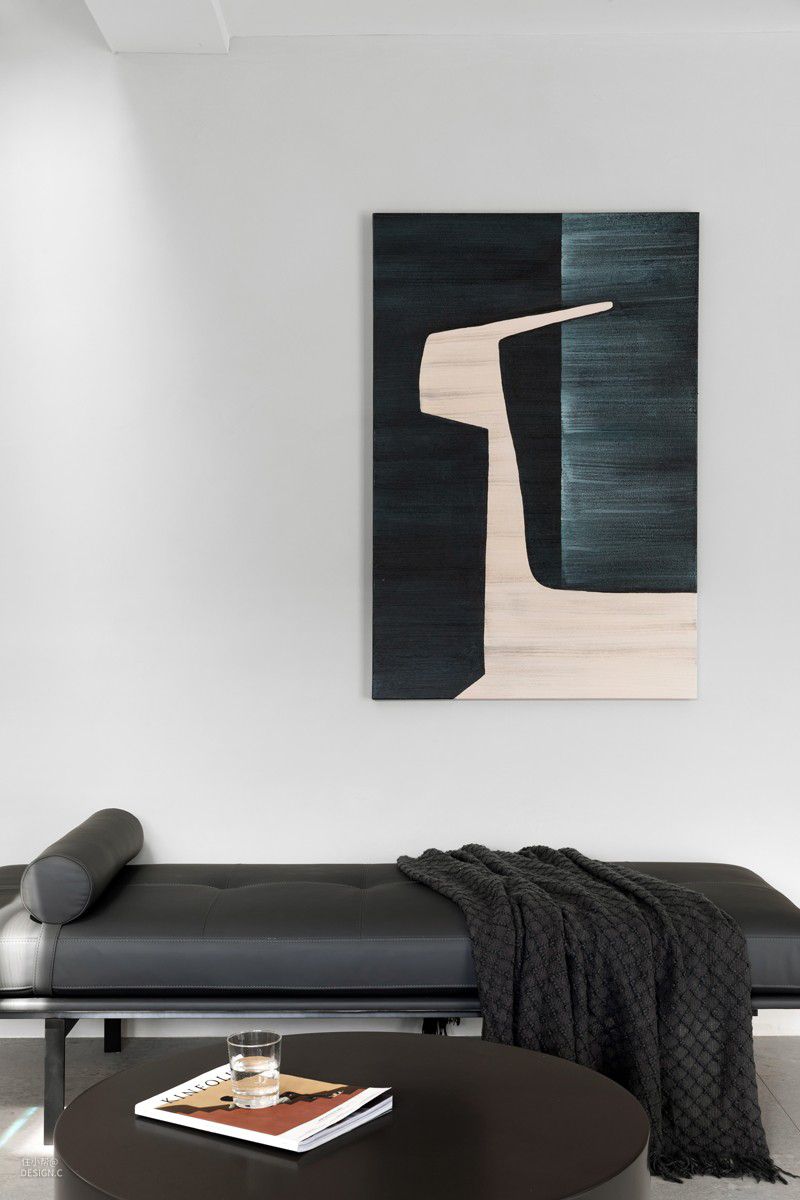 黑、白、木色的素雅空间辅之以非常规的圆盘桌脚轻巧又乖张。
