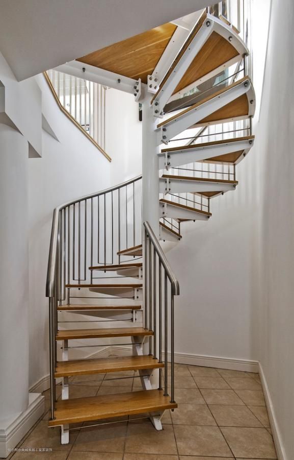 三 、螺旋楼梯。占用空间小,适用于任何空间,但安全性较差,适合年轻人居住。它的平面形状是以中间的柱子为中心,呈螺旋式上升,结构紧凑,一般使用在有创意的住宅里,比如复式风格住宅,它是住宅的一个亮点,是年轻人的最爱。但这款楼梯的中间部分和两端的踏面宽度不同,上下楼梯时需要小心。