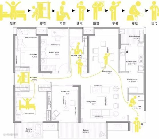 设计应在满足家人的生活习惯下,运用短路线提高行动效率,减少行动时间。