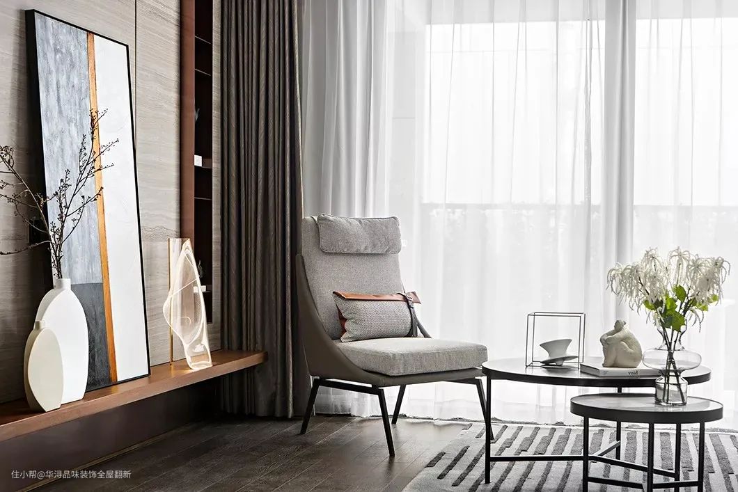 119㎡现代简约,沙发墙方形+圆形挂画,连成一幅好优雅