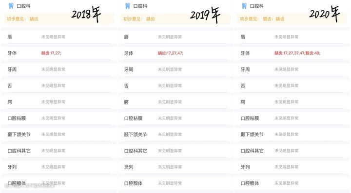 从2017年开始,小泽每年都会进行健康体检。眼见着体检报告上自己的口腔健康从4年前的【未见异常】,到2020年已经变成4颗龋齿+1个智齿。这已经是连续第三年增长了,而且增长速度飞快,不得不引起我对口腔健康的重视。