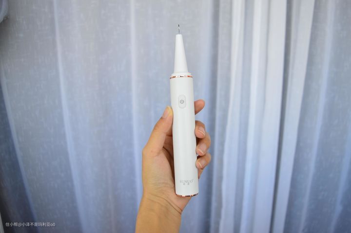 小泽从小就对看牙医抱有阴影,初次看到洁牙仪上细长的工作针,本能的有些害怕,在牙齿上轻微的试探几次后发现并不会产生疼痛的感觉,而是有一种酥酥麻麻的触感,使用了几下很快就能适应。使用过程中纤细的清洁头可以很轻松的深入齿缝,利用每分钟200W次声波震频,击碎牙结石,清除牙齿污渍。