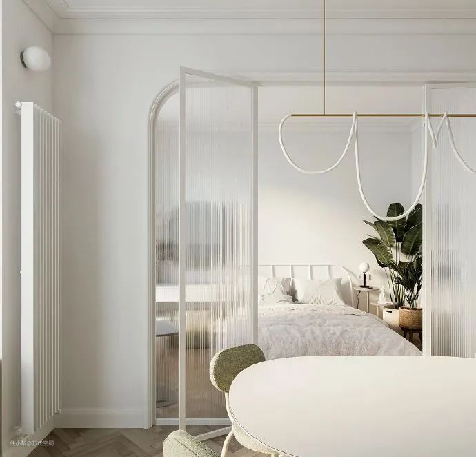 小户型或一居室中,直接用长虹玻璃做卧室门,让光线互通,同时颜值满满▼