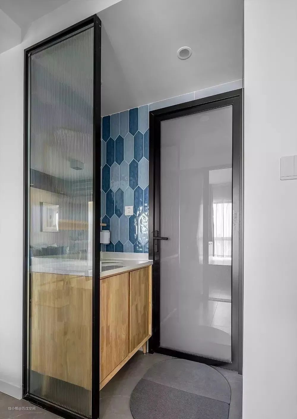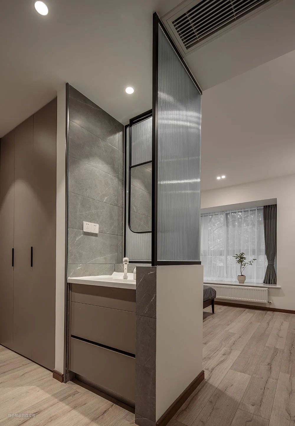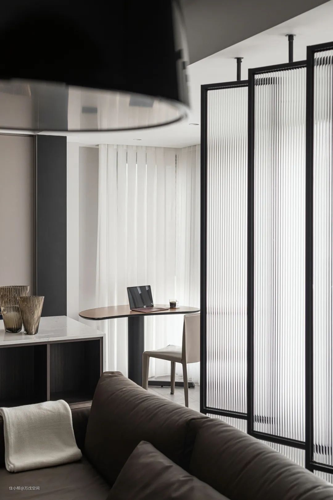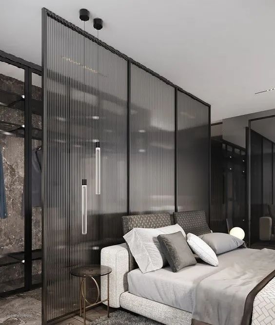 长虹玻璃规避了玻璃无法保证私密性的缺陷,让空间更具时尚感设计感,形成一种隔而不断的朦胧质感▼