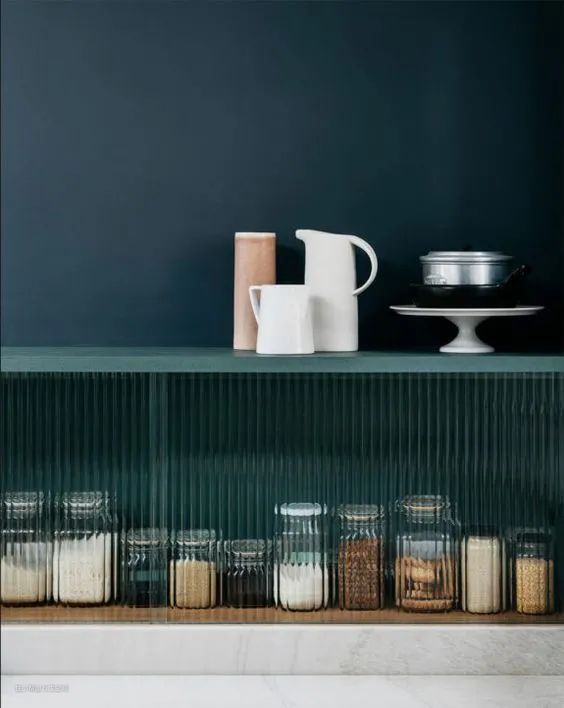 置于各类柜体中的长虹玻璃,磨砂的质感,竖行的纹路,在感官上赋予其独特的艺术气息。