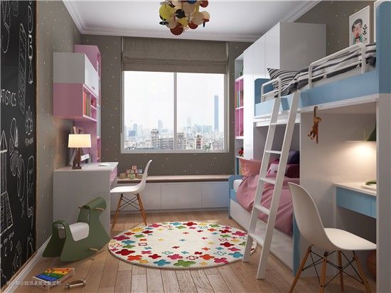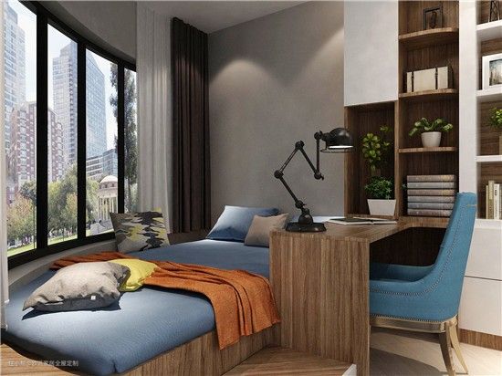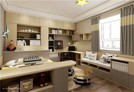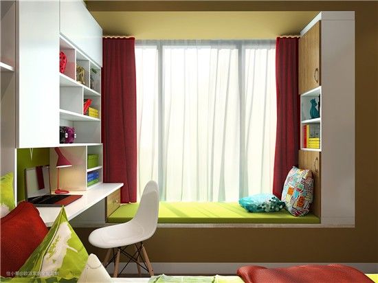 儿童房飘窗可以结合书台一体化定制。
