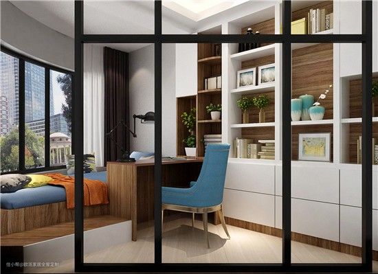 书房飘窗柜可以定制宽一点,软榻可以休憩,可以阅读。