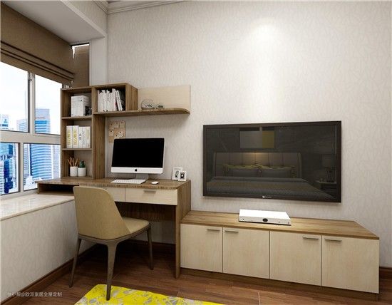 壁柜、地柜、飘窗柜与书台一体化定制。