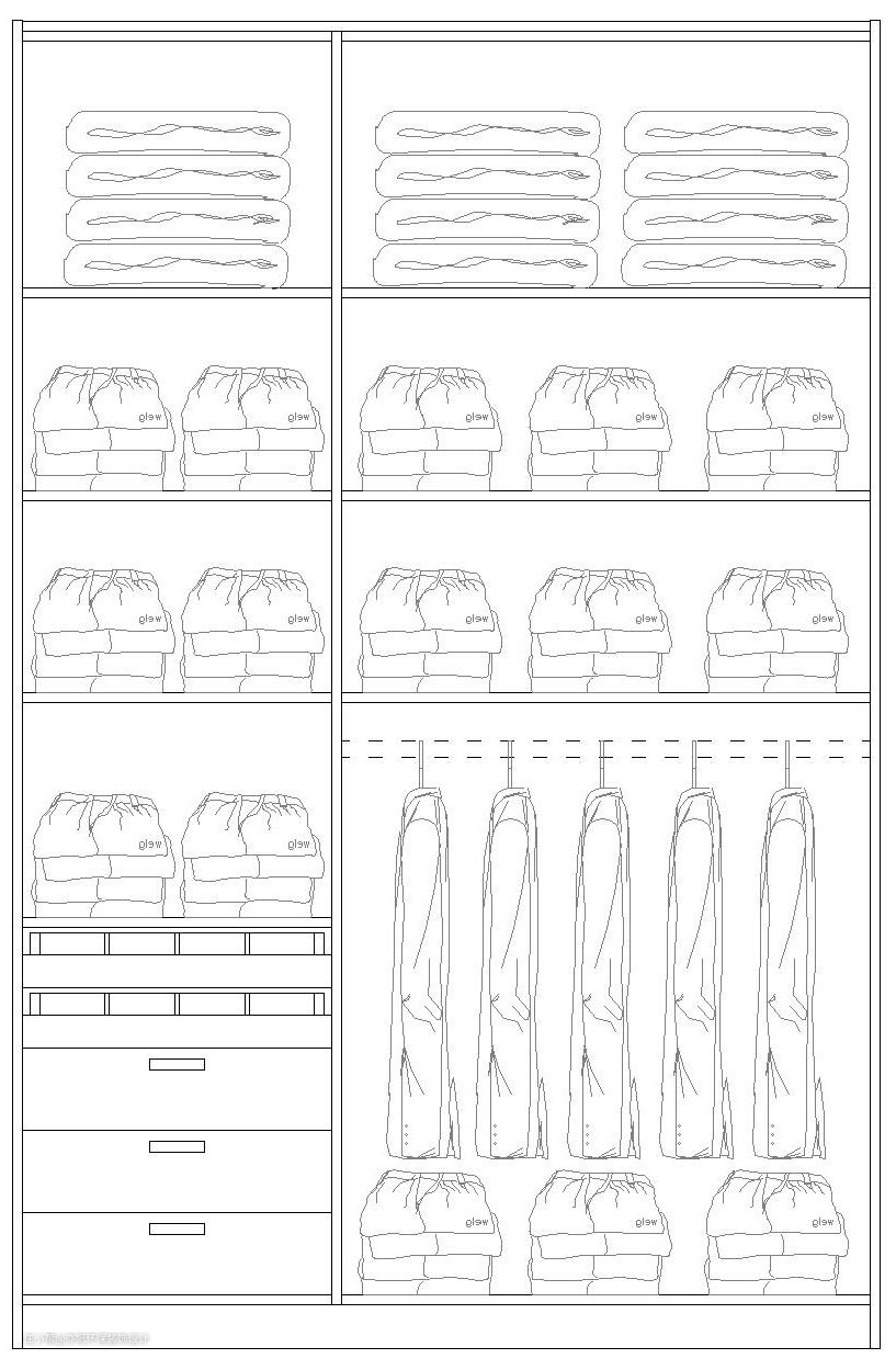 现在主卧常常设计衣帽间,衣柜或衣帽间的收纳规律,我们可以适当了解下,才好根据自己衣服的情况来设计:
