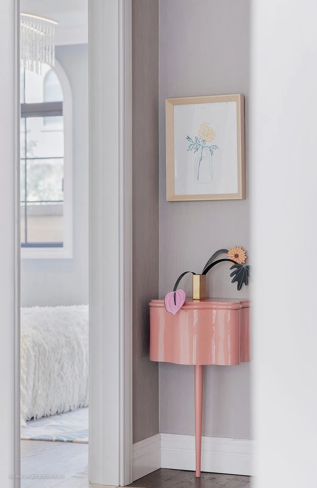 我们采用了明亮的木质边柜和樱花艺术品摆件,以现代的方式带来明媚春天感觉,在充斥着日光的日子里,让空间唤起宁静安逸的氛围。