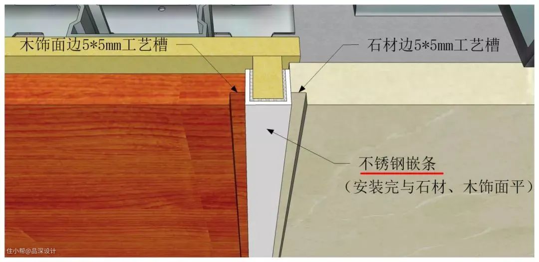 木饰面及石材“嵌条处理”的装饰收边收口通用工艺解析!