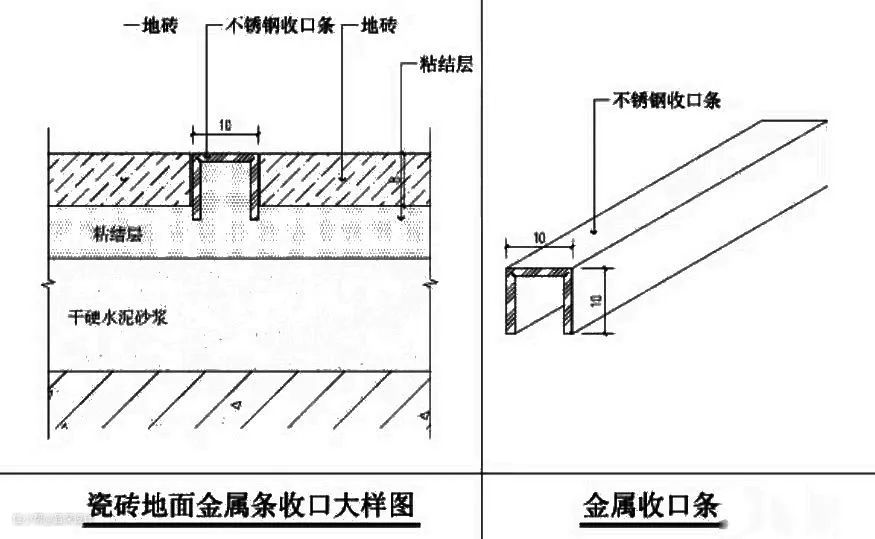 1.3 地面石材金属嵌条,采用嵌缝条的做法