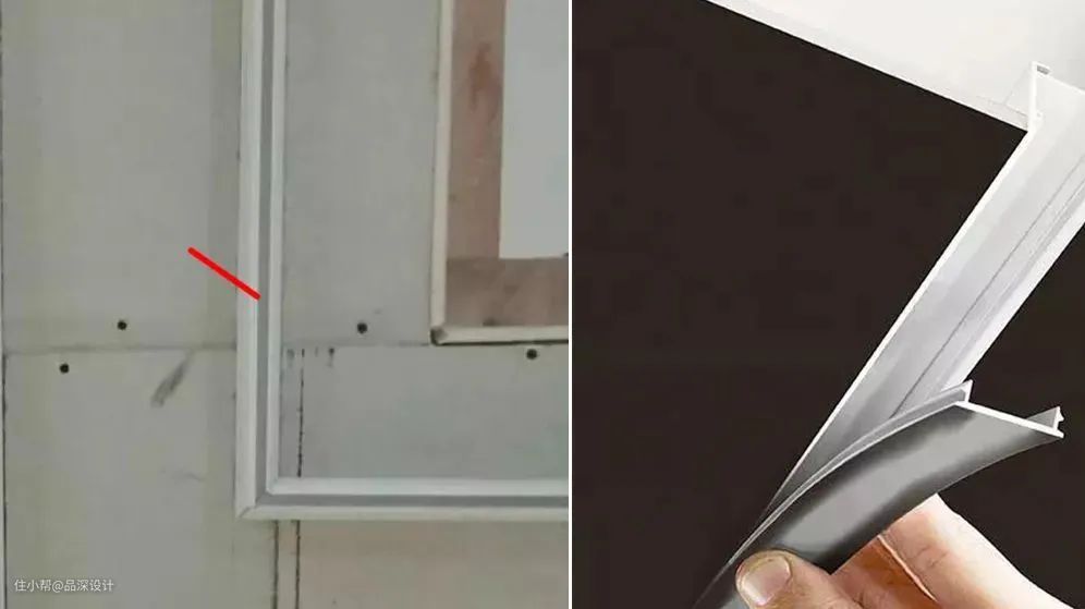 木饰面基层板需要注意的是延伸到嵌条位置,嵌条基层条宽度小于U型条内壁宽度,采用中性硅酮胶安装。