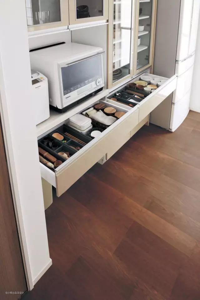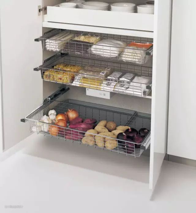 通常中国人习惯买回来的土豆会放在小阳台,干货会放抽屉,对于具有湿度并且又未清洗的食材,可以考虑一个合适的位置,保持空气流通可以使橱柜不易滋生细菌。
