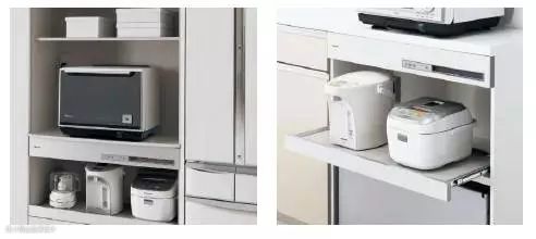 ▶ 台面可根据需要放置电饭煲、微波炉或小型消毒碗柜等,如台面长度不够,则可嵌入吊柜