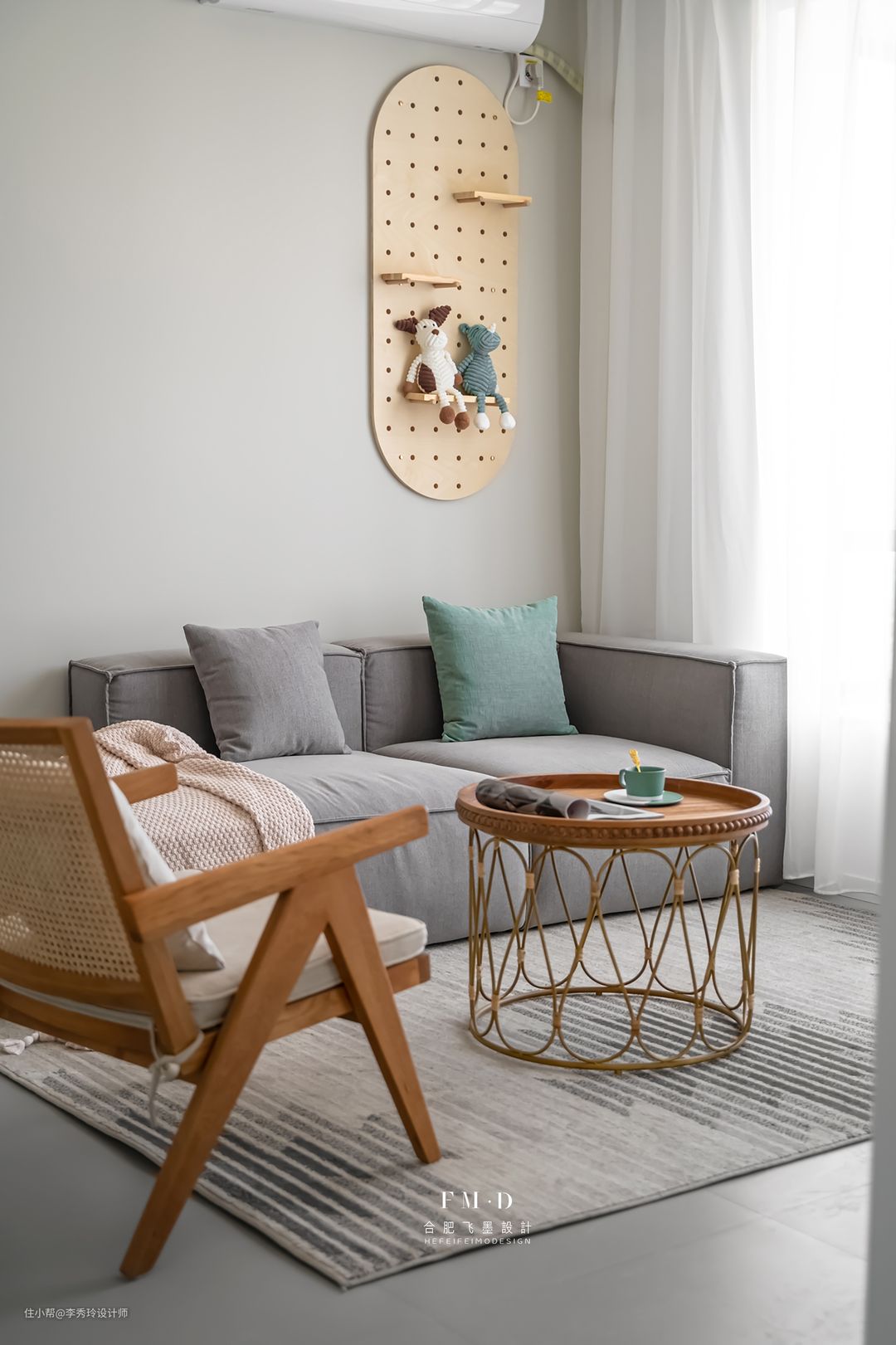 ◆ 在沙发不靠墙的客厅设计中,可以在沙发旁边安装地插,方便坐在沙发上时手机充电。
