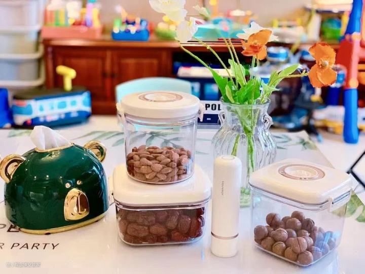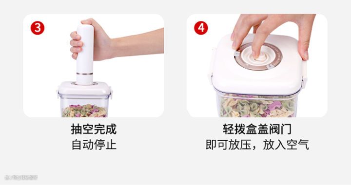 具体操作如下,只需要轻轻一点,10几秒就会实现真空存储环境,很好的隔离氧气,防止串味问题。