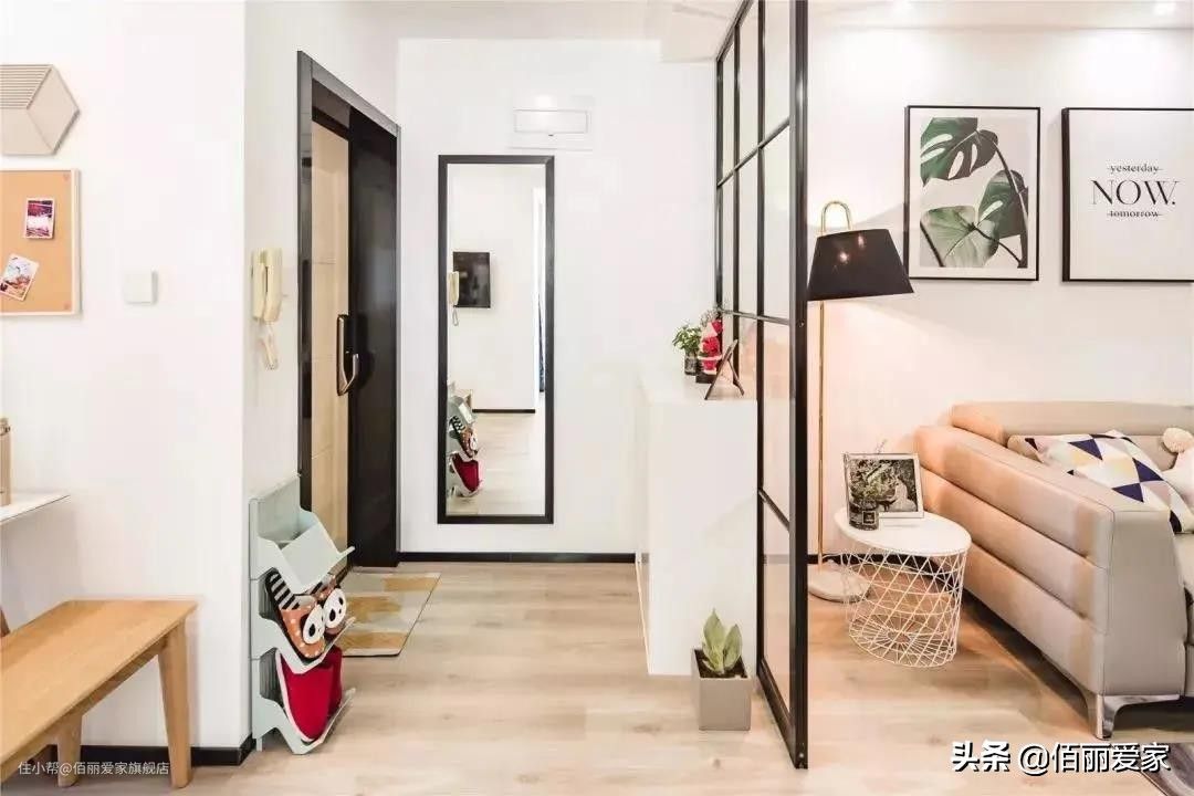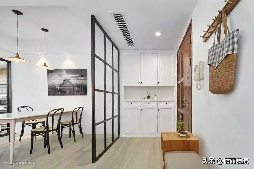长虹玻璃黑框铝合金架构和成品鞋柜,避免了入户即是客厅的布局的尴尬。