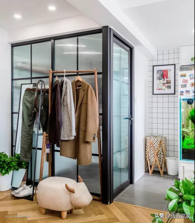 玄关使用长虹玻璃能增加空间的通透感,而且保留了一丝神秘。对顾及隐私又受限于小空间的家庭来说,不失为一个好选择。