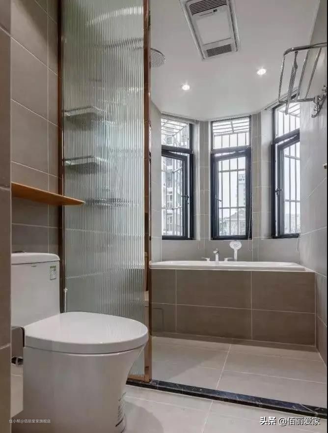 卫生间的淋浴区与马桶之间,常常需要隔出干湿分离的空间,长虹玻璃移门就是不错的选择。
