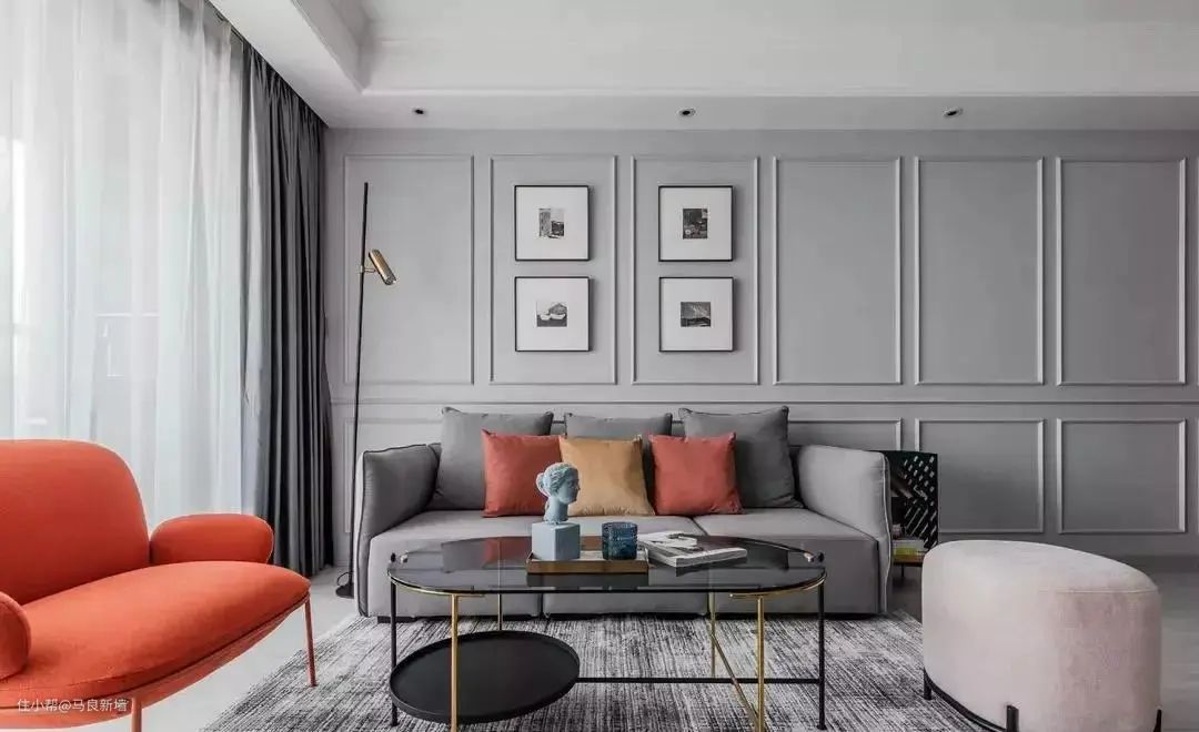 墙面用深浅灰进行搭配,本身就很好看。再搭配不同色系的软装,就会有不同的感觉,搭配红橙色,温暖大方。搭配白色简约,搭配米色和绿色优雅鲜活~