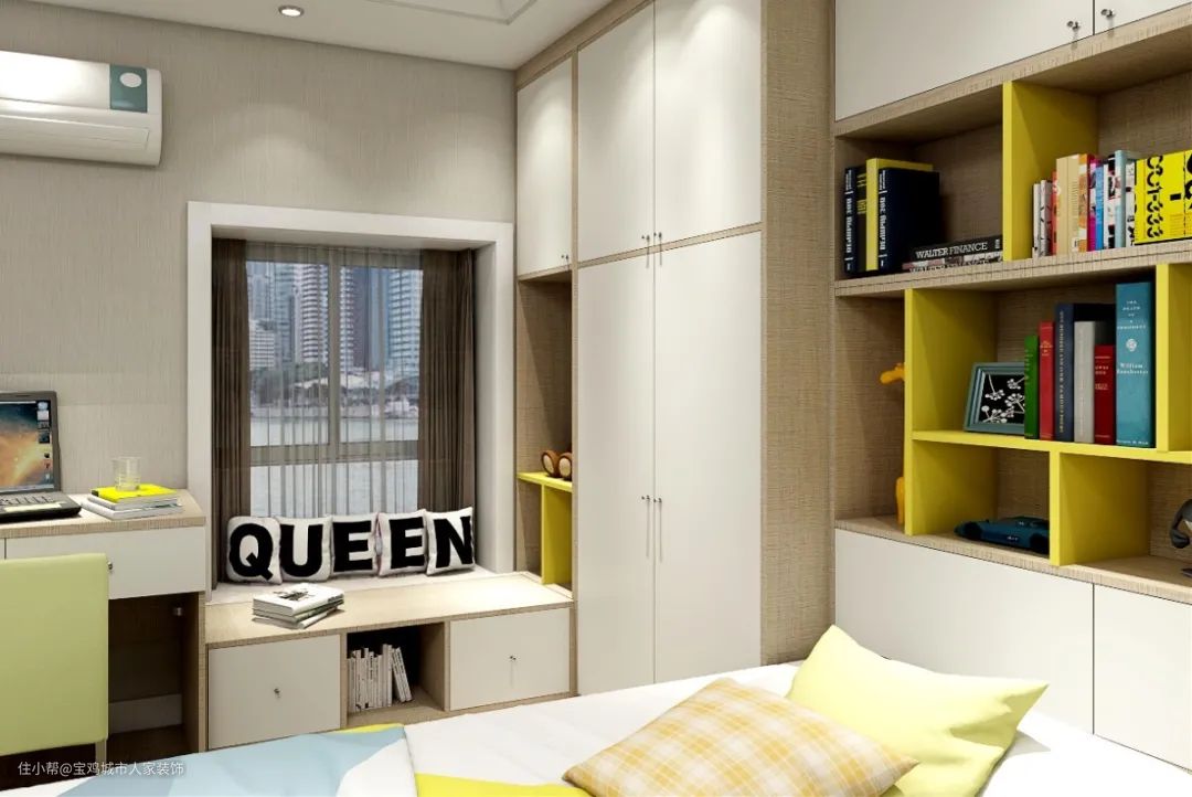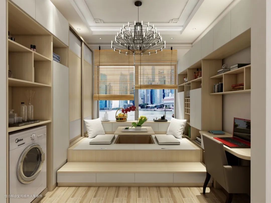 这是一种比较常见的设计,可以将书桌柜、卧室、收纳等功能组合式打造,实现功能的最大化。如果是小户型的家庭,不想浪费空间,又想要功能齐全,可以考虑这种设计。