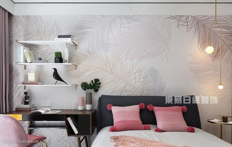 精致的粉色单品让次卧看上去温馨又梦幻,让空间充满灵动感。靠窗书桌上摆放着简约的装饰品,阳光照在身上温暖舒适,靠窗学习办公非常惬意。