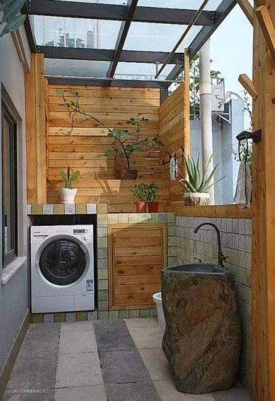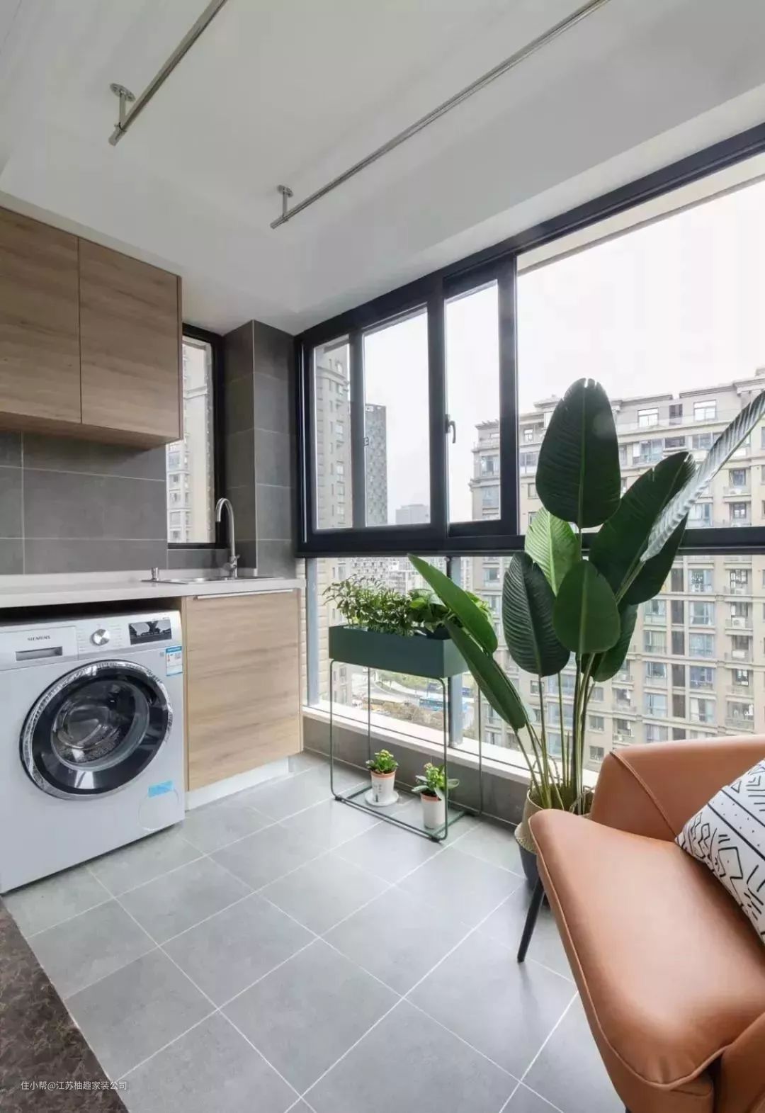 在我们接到的案例里,要求把阳台改造成洗衣区的客户不少,洗衣区同时收纳脏衣、抹布、清扫用品,缓解其他空间的储物压力。