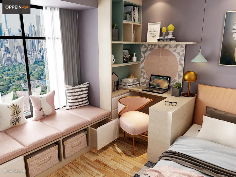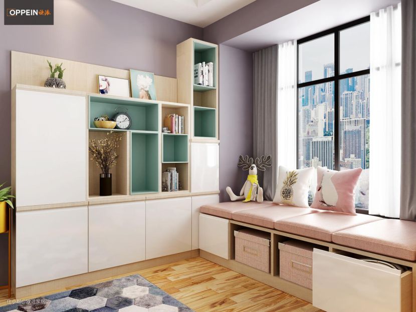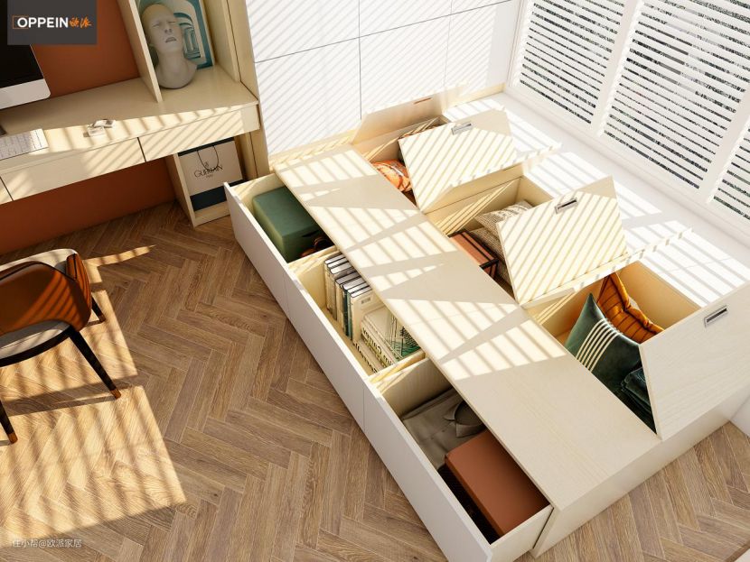 强大的储物能力可以满足房主人任何收纳需求,定制飘窗位集休闲、工作、读书、伴读等功能于一体,既能作为主卧或是书房,也可以作为儿童房使用。
