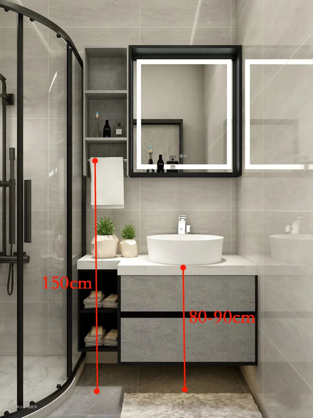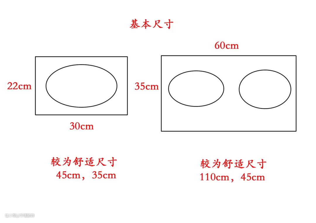 较为舒适使用尺寸 → 长110cm,深度45,放下部分洗漱用品。