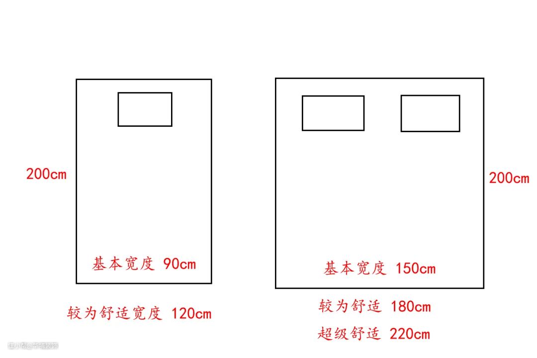 如果有一侧靠墙,靠墙的一侧要留50~100cm,方便铺床。