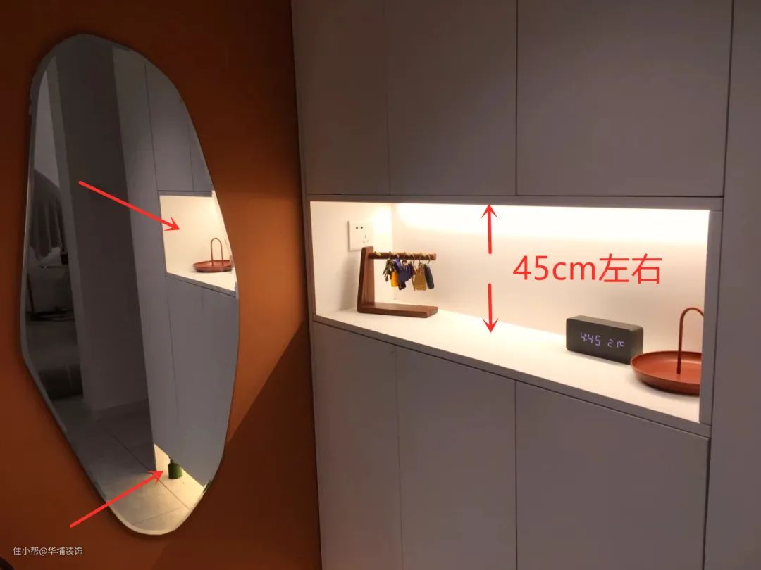 留空高度45cm左右,这个高度不仅方便我们拿放东西,视觉上也更容易找寻物品。