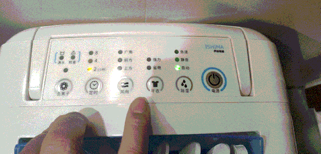 伊岛的ZL10的操作按键全部设计在顶部,而且全部是都是实体按键,不是触摸屏,没有液晶屏幕,没有湿度设置按钮,仅仅保留的负离子风开关,定时开关,风向调整,干衣功能,除湿模式,对了,就是那种一看就是满满的日本风格的产品设计。