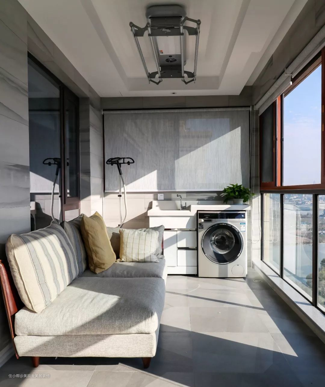 如果阳台正在装修还没做吊顶,计划安装电动升降衣架,可以事先预留晾衣架的位置,这样可以把顶座内嵌到吊顶里,让阳台更加美观好看。