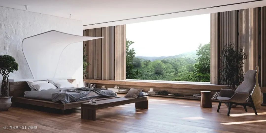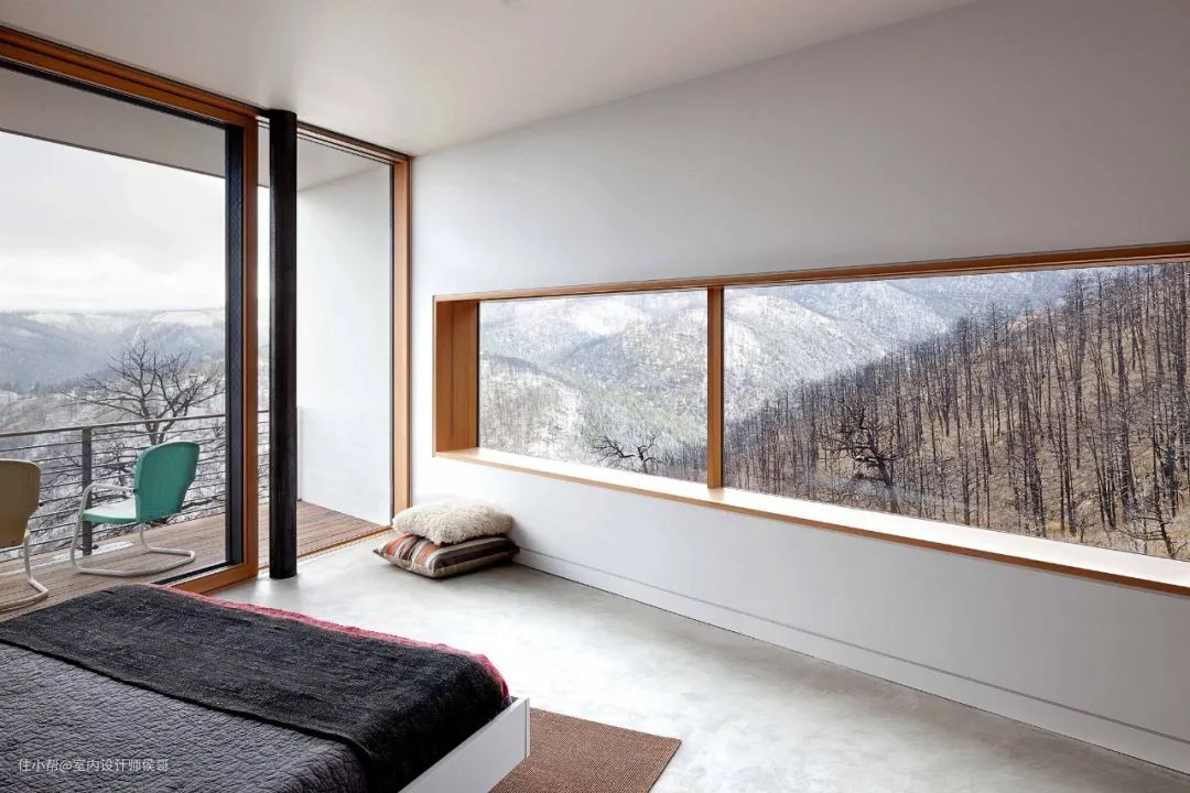 如果外部有一处美景,那不妨在卧室开个方窗,把窗外“四季”框进来,春夏秋冬的变幻尽收眼底。