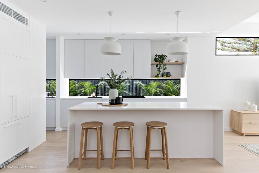 优质的内部构造,会让下厨也是一种享受,告别过去“面壁思过”的下厨模式,将操作台背景墙做成长条窗户,实用与美观兼具。