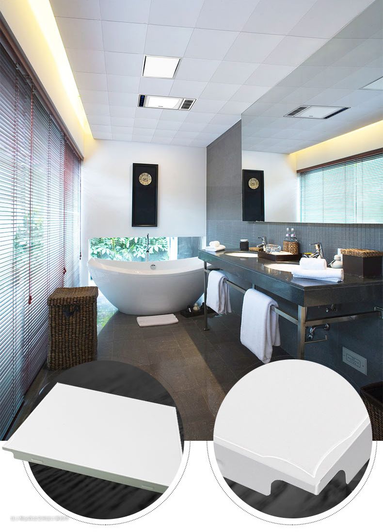 二、铝扣板吊顶--就是我们常说的集成吊顶,它的质地较为轻便而且非常耐用,具有很高的装饰性,还能抵御各种油烟,且具有极高的防潮性,常在厨房吊顶和卫生间吊顶中运用。
